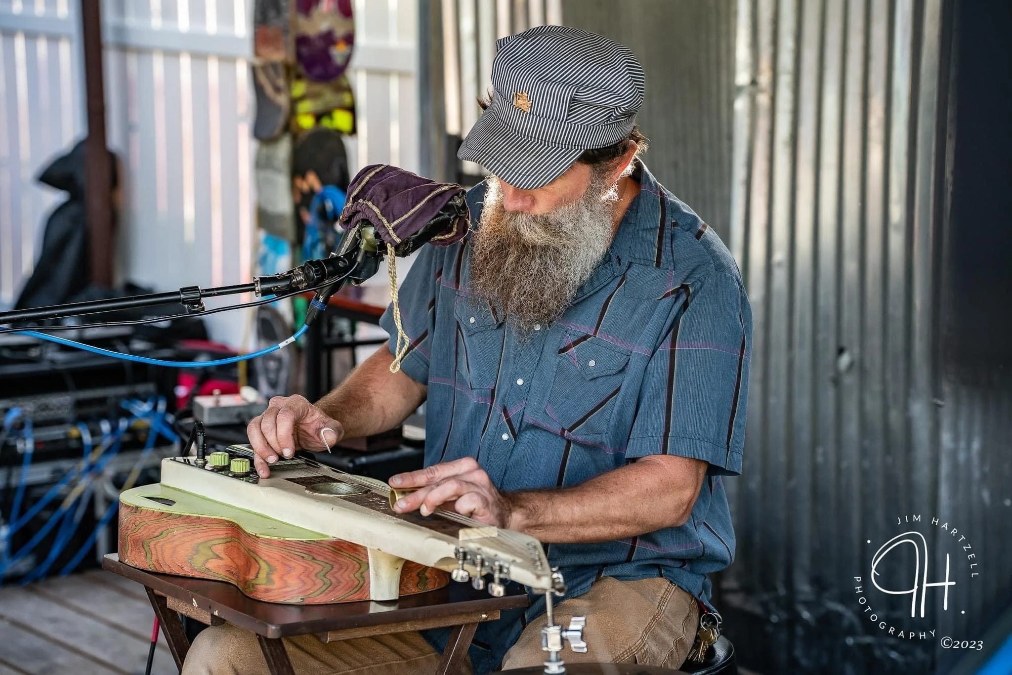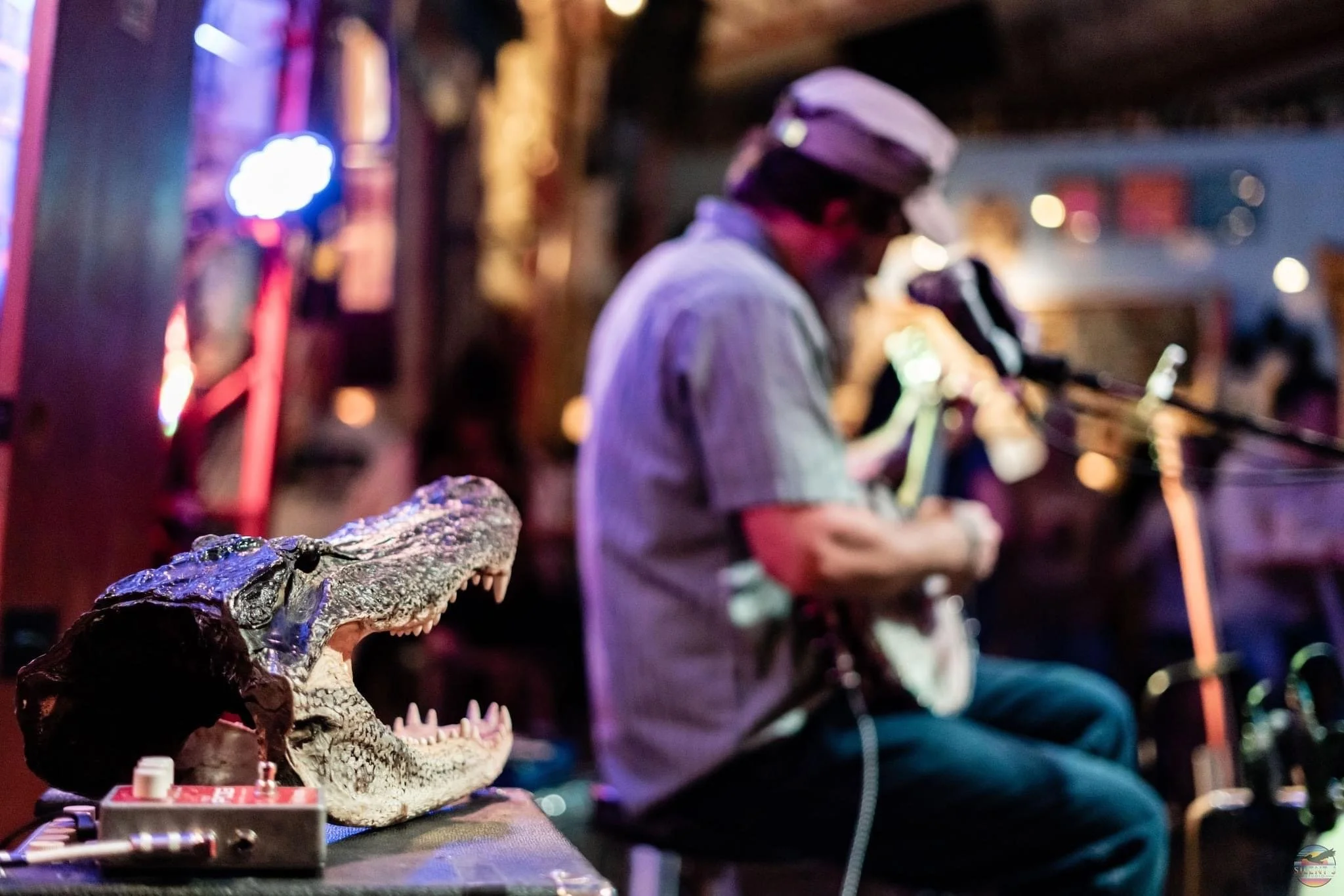 Ben Prestage's own brand of Deep South Swamp Music has been featured at some of the world's premier Blues, Jazz, Americana, and Folk festivals. Armed with self-crafted instruments made from roasting pans, alligator heads, and even a closet door Prestage creates a unique sound that has earned him numerous awards and nominations including: