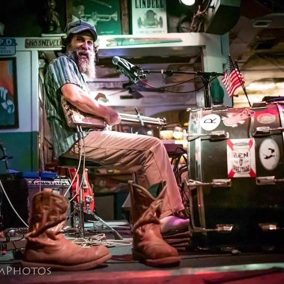Prestage cut his teeth performing in Florida fish camps, biker bars and tourist traps. After a stint as busker/street performer on historic Beale Street in Memphis, TN Ben emerged as one of world's top one-man-bands. After a releasing a dozen albums, and touring across the US and more than a dozen countries, Ben Prestage continues to create music that "soars like a swamp hawk and wallows like an old bull gator."